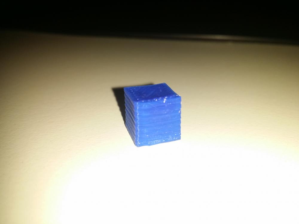 a tutti... ieri, 15/09/2016, è arrivata la stampante che ho acquistato... oggi l'ho montata... 4 ore assemblaggio e 2 di cablaggio... 1 ora persa a rimettere il firmware... totale 7 prima stampa... cubetto da 1 cm... cosa ne pensate??? misura al calibro 9,8 su tutti i lati... come risolvo le facce scavate? ho usato il filamento che era nella confezione: PLA 1.75, Nozzle 0.4, temp estrusore 210, temperatura Letto 55, Layer Height 0.3, First Layer 0.4, Length 2mm speed 40 mm/s Min travel after retracting 2mm Retraction Length 10mm ... poi bho... -