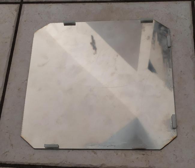 4. io ho una stampante come la tua (geeetech pro b )ultimamente, se ti posso consigliare, mi sto trovando bene con: bltouch babystepping poi come piano di stampa ho appoggiato sul bed una piastra di acciaio con (come si vede dalla foto) dei pezzi di plastica incollati nella parte inferiore della piastra. Gli smussi sugli angoli sono per dare sfogo alle teste delle viti. Le dimensioni della piastra sono 6mm per parte piu' grande del bed. Ho posizionato la piastra sul bed, centrata ad occhio, poi ho iniziato ad incollare da sotto i pezzi di plastica, in modo che non si sposta. In questo modo non ho bisogno delle mollette per tenerlo fermo.