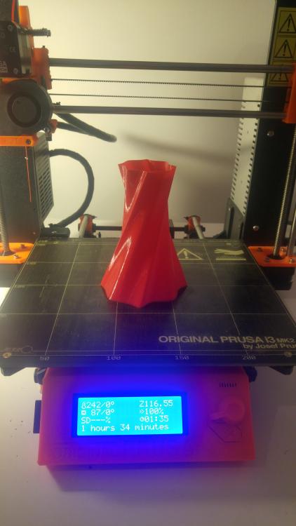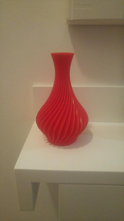 Io, il forum e la Mk2Lore82 ha pubblicato una discussione in Problemi generici o di qualità di stampa Ho risolto totalmente i problemi di profondità layer irregolare (è bastata una piccola modifica al supporto della bobina del filamento per favorirne la rotazione). Questo forum per me è stato una mezza bibbia, senza sapere nulla di stampa 3d sono riuscito ad assemblare una Original Prusa Mk2, e devo dire che assemblarsi da solo una macchina ti aiuta molto a capirne le problematiche, le eventuali migliorie, e tutti quei meccanismi che un neofita non potrebbe mai comprendere con un attrezzo precostruito. Ho trovato il piano ideale per stampare (Ultem Pei) e non uso colle o lacche. Stampo in abs, Pla e Co Poliestere, ora ho dei filamenti nuovi da provare e oltre che divertirmi come un matto mi rientra qualche euro (pochi) sia per gli oggetti stampati, sia per le modellazioni personalizzate. Tutto quello che so l'ho imparato qui. Grazie a tutti per le dritte, dirette o indirette! (i due vasi sono modelli trovati su Thinginverse, l'altra è una mia modellazione)
