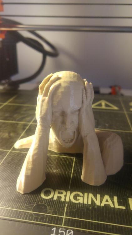 Problema profondità LayerLore82 ha pubblicato una discussione in Problemi generici o di qualità di stampa Buongiorno, ho un Original prusa Mk2 (ho comperato il kit e me lo sono assemblato), e non mi possso assolutamente lamentare per ora. Allego foto esplicativa per esporre il problema che a volte mi si verifica, ossia varia la profondità dei layer creando questo sgradevole effetto "solco"; lo vedete bene tra il naso e i denti sotto l'occhio sinistro. Letto 60 gradi, estrusore 215, materiale pla. Qualcuno ha idea di cause e (magari) soluzioni?