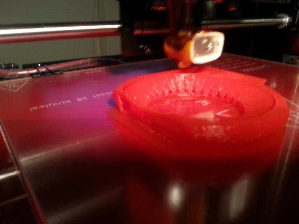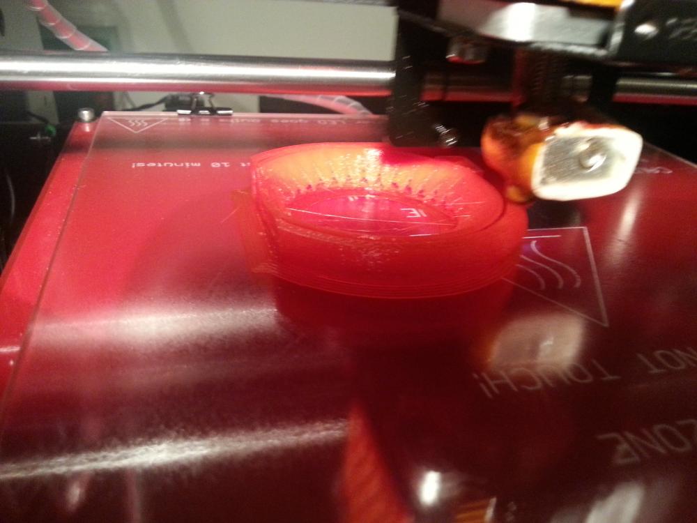 oggi faro' le prove della temperatura, il flusso a quanto lo metto? 100% oppure 105%? ieri sera e tutta la notte l'ho lasciata stampare ho voluto fare una prova a stampare da sd, questo e' il risultato ha stampato per 9 ore! purtroppo ho idea che doveva essere fatto con filamento flessibile..! pero' a parte un punto che e' caduto il filamento non e' venuto poi male.. -