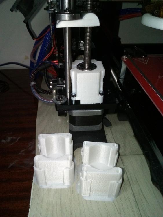 Eccomi qua, tra lavoro e impegni sono riuscito a dedicare un pò di tempo alla stampante. Il problema del modello di spiderman credo comunque che era, oltre al PLA senza raffreddamento, la troppa distanza del supporto dal modello. Quando mi andrà proverò a farne un altra copia. Nel contempo ho applicato vari fix. Piazzate 3 ventole che sparano sul PLA. Ho cambiato le barre filettate standard con quelle inox, lavorando in un brico ho quasi tutto quello che mi serve. Dunque sono andato con il mio calibro digitale e ho misurato quasi tutte le barre fino a che non ho trovato quella più spessa e l'ho smezzata. Le barre standard essendo più strette creavano più gioco all'interno del dado ottonato. Poi ho stampato gli anti wobble sia per l'asse Z sia per il Top Mount dove finiscono le barre filettate. Ho applicato i cuscinetti sui top mount e ho colmato i vari vuoti con il teflon per evitare ulteriori giochi. Quello che ho notato è che riscaldandosi il piano si dilata e quindi tende a scendere, per non fare lo Z ad ogni cambio temperatura ho dunque passato al calibro tutti i dadi da 6 che avevo per avere quasi lo stesso spessore e ne ho impilati 4 per ciascun lato, compresa una fila al centro del piatto. Gli ho avvolti nel capton in modo che non si muovano così è stato ottenuto un piano stabile. Ho infilato sotto alla stampante e intorno alle barre filettate della base del piatto, della Isofoam da 9mm, viene usata per i tubi isolanti per l'acqua onde evitare che si ghiaccino l'inverno ma è ottima anche come assorbivi vibrazioni, oltre al fondo di polistirene estruso duro da 2cm che già avevo sotto la stampante. Nelle zone vuote dell'acrilico ho anche applicato a random strisce di nastro isolante da 5mm anche questo assorbe vibrazioni. Ho ristampato i vari fix, quelli dell'asse z ne ho stampato uno all'inizio del piatto e uno alla fine in modo da avere maggiore distanza fra uno e l'altro, gli ho passati al calibro e devo dire che sono rimasto soddisfatto. A voi le foto. Ora sto stampando gli accoppiatori dei motori con le barre filettate, anche quelli creano wobble e vanno fixati :D -
