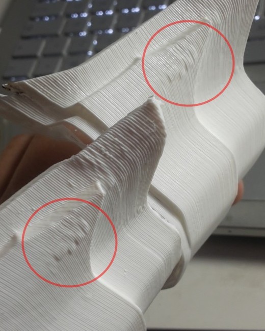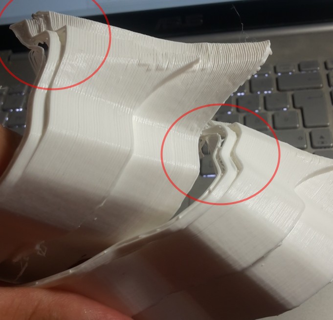 Ciao a tutti, posto qua anche se non so se possono essere problemi relativi solo alla NG o piuttosto generici. Comunque, ogni tanto mi capita di rilevare sui pezzi stampati gli errori riportati nella prima foto. Se fossero fotografie digitali li definirei degli "artefatti", in pratica ci sono dettagli dove non ci dovrebbero essere. La cosa che non capisco è che vengono ripetuti sistematicamente su tutte le copie stampate dallo stesso file GCODE. Ovviamente nel file originale questi "bozzi" non ci sono e nemmeno nell'STL. Slic3r a video non li mostra e ho provato a guardare con il GCODE visualizer di Octoprint, ma i profili mi sembrano lineari (non potrei giurare visto che non c'è una vista di insieme ma solo layer per layer). Secondo voi cosa possono essere? Il secondo problema invece si è presentato stampando lo stesso pezzo e in pratica, arrivato ad una certa altezza c'era un spostamento netto dei layers con il conseguente disallineamento che si vede nella foto. Qua però al terzo tentativo ho capito cos'era, dopo aver escluso danni al file GCODE. In pratica non avendo supporti sufficienti delle "punte" si imbarcavano verso l'alto e ad un certo punto si incrociavano con la traiettoria della testa, bloccandola. Alla fine ho girato il pezzo e risolto. Spero che questa esperienza sia d'aiuto. -