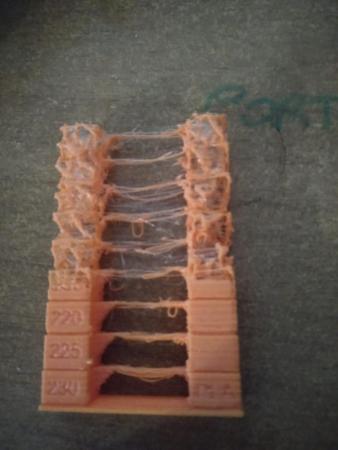 Ecco il risultato. Sinceramente non so cosa trarre da questo risultato, a parte che non dovrei stampare sotto i 220° (ho un filamento BQ) -