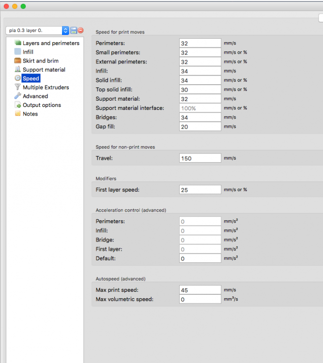 poi vengono eseguiti altri due layer ad una velocita superiore (che io presumo sia quella impostata nel menu che vedete in foto (30 , 32 , 32 , mm/s)