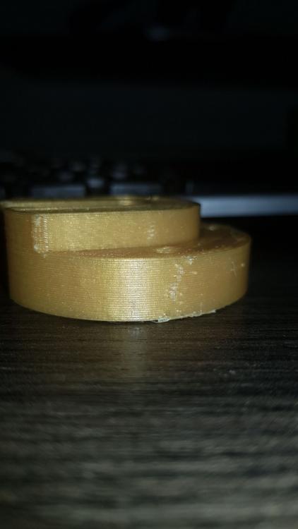 Salve a tutti,per curiosità sto provando a stampare col pla,non che non l'avessi già fatto,ma su questa macchina sarà la terza stampa che faccio con questo materiale,e ho notato cosa effettivamente non va. Mi sono accorto infatti che il sopracitato estrusore tende a colare molto (cosa che per inciso non fa usando abs come di consueto). Non so rapportare il mio "molto" ad altri estrusori,so solo che l'abs certe sgommate non le lasciava,lascio sotto qualche immagine per farvi capire l'entità della cosa,partendo dal primo layer,si vede che durante gli spostamenti perde del materiale su cui poi stampa il primo layer (che sono consapevole di dover smagrire) Qui invece si vedono in dettaglio l'effetto dei "pelucchi" che colando impattando sul perimetro esterno (i 2 oggetti sono stati stampati assieme) vanno a depositare delle imperfezioni continue Cosa che si manifesta anche su questo lato C'è qualche "tips & tricks" da adottare per stampare sto materiale?Può sembrare assurdo,ma sono partito con l'abs e ho sempre stampato quasi esclusivamente con quello. Ho anche il dubbio che possa essere il peso del filamento stesso in configurazione bowden a farlo avanzare quel pochissimo che basta per spingere fuori materiale e ho anche pensato di ristampare l'X in direct per avere un controllo più millimetrico sul filamento,ma non vorrei fare un lavoro inutile Penso inoltre che sia sufficiente poter ritrarre il filamento durante gli spostamenti ma non ho trovato nessun parametro da spuntare in slic3r che possa fare al caso mio,nel caso,c'è qualche comando in Gcode che potrei dare per far capire alla stampante che deve ritrarre se non sta effettivamente estrudendo?O eventualmente cura offre questa opzione? Ringrazio in anticipo chiunque riuscirà a darmi una mano o lanciarmi uno spunto sulla possibile risoluzione,inizia ad essere frustrante non riuscire a stampare quello che tutti considerano il materiale entry level