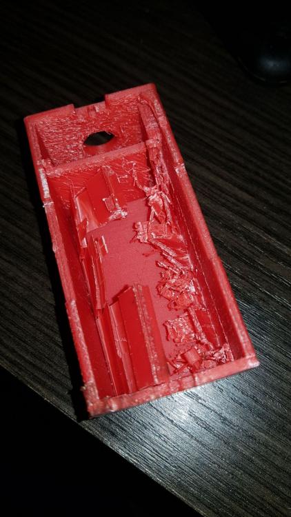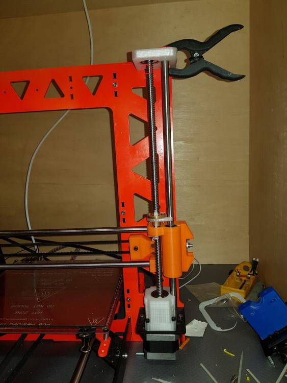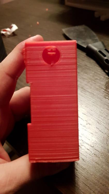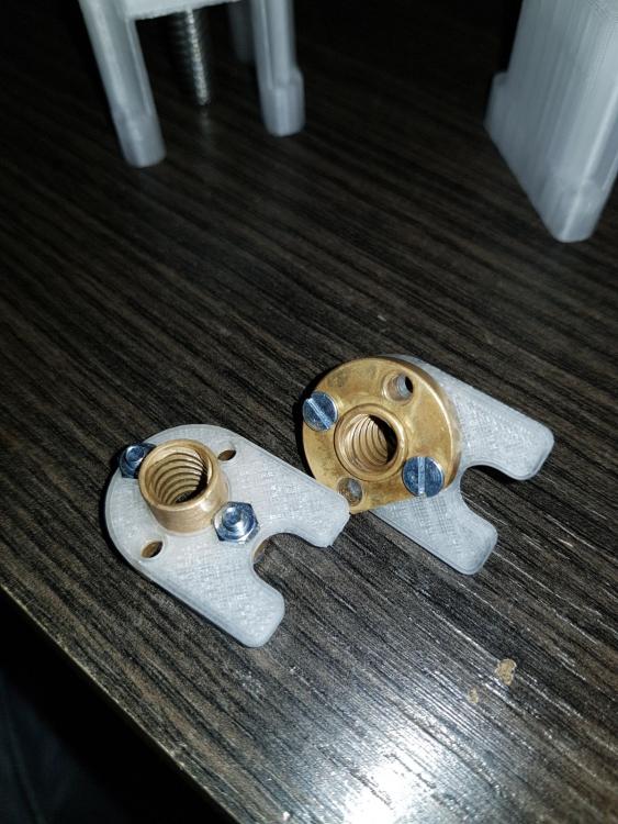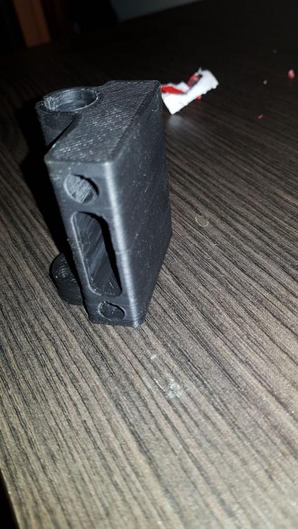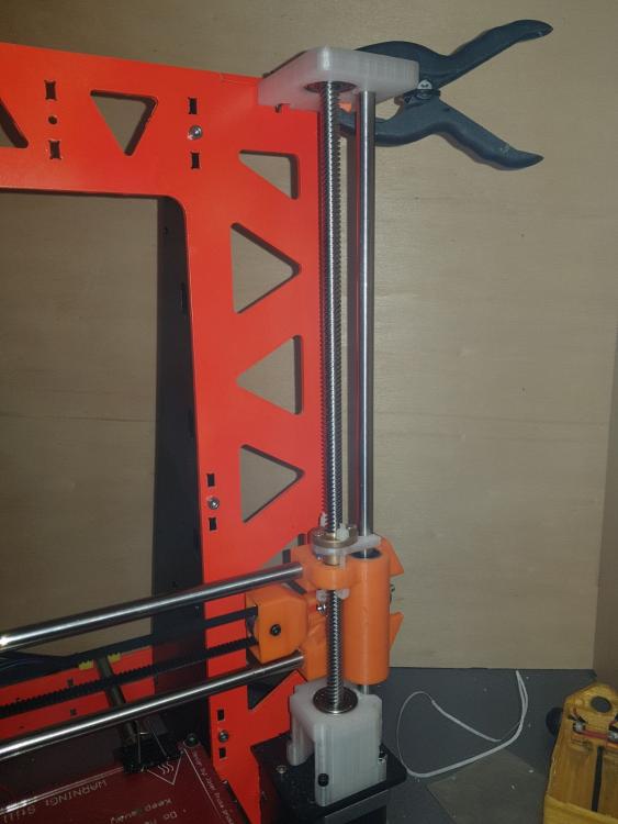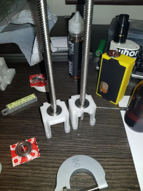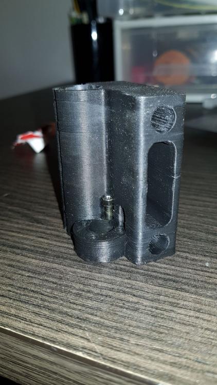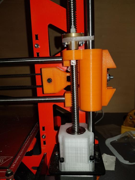 Buona sera a tutti,ho pensato di stendere un diario di bordo che si trasformerà in una guida una volta azzeccata l'alchimia perfetta per ottimizzare la sopracitata stampante...sperando di poter essere utile a qualcuno,magari molte modifiche inutili se non deleterie potete non farle anche voi vedendo il risultato qui :) Quello che posterò sarà in parte roba che arriva da me,altri spunti li ho presi ovviamente dal web (parto sempre dal presupposto che qualcuno,prima di me,ha avuto lo stesso problema da risolvere e una volta su 2 non devo nemmeno aprire inventor :D ),comunque sia non preoccupatevi,linkerò e caricherò tutto il necessario quando serve. Partiamo a secco.Qualche mese fa ho preso un'm200,2 reprap e una di fascia media sono troppe e tra la geeetech e la P3 ho tenuto la P3. Il progetto della P3 è senza dubbio valido,si vede che c'è molto lavoro dietro,e una buona progettazione.Tutto in acciaio,tutto a incastro e viti,nessuna perpendicolarità assi da regolare.Insomma tutto molto bello,ma è un progetto nato nel 2013,gli standard di 4 anni fa e soprattutto le aspettative di chi assemblava ste macchine erano diverse,molto diverse. Ho quindi cercato di dare una svecchiata,i risultati li caricherò di volta in volta,oggi inizio a postare qualche miglioria,l'obiettivo generale non è solo la qualità,ma dovrà essere un mix di precisione,affidabilità,replicabilità e comodità di utilizzo. Iniziamo dall'asse Z. Come anticipato,è un progetto vecchiotto,vedo che adesso anche nel più economico kit cinese le barre dello Z sono almeno trapezie. La P3,come la maggior parte delle reprap dei tempi,utilizza 2 barre filettate M5 iso. Ci sono diverse scuole di pensiero riguardo le barre che movimentano l'asse Z,io sono per le trapezie (a 4 principi) .Infatti ho montato un paio di quelle.La difficoltà che ho da subito riscontrato,è stato...stampare un pezzo abbastanza preciso per alloggiare cuscinetti e il dado flangiato! Beh alla fine ho dovuto carteggiare la base su cui era spampata (i pezzi erano warpati da far paura) e trapanare il tutto sotto la colonna,3 min e passa la paura. Il progetto è questo https://www.thingiverse.com/thing:1592451 sotto trovare un prima e dopo Prima Dopo Non male no?Beh più o meno,la qualità è indubbiamente migliore,è uscito meno materiale fuori posto dalla trapanata e il primo layer è decisamente più ordinato,ma siamo lontani dall'avere una stampante al passo con gli standard odierni.Anche perchè se guardate bene il wobble è sparito,ma il banding è ben evidente,allora...che fare?Beh ho provato a levarmi un "dubbio" o meglio,ho riconfermato una mia convinzione:il top dell'asse Z non vincolato è una cagata pazzesca (per citare un tale).La barra infatti,descrive un cono anche abbastanza evidente.Allora ho cercato qualche soluzione,il top,per quello che mi risulta,sarebbe un giunto rigido e una tornita all'estremità della barra e successivamente dare una leggea spianata,in modo che il grano che si va a stringere per fissare la barra al giunto non finisca tra un filetto e l'altro...ma purtroppo non dispongo di un tornio,quindi ho optato per un doppio cuscinetto,uno appena dopo il giunto flessibile e l'altro all'altra estemità,in questo modo l'unica componente orizzontale del moto concessa sarebbe il gioco tra barra-cuscinetto e il gioco radiale del cuscinetto stesso.Con un po' di fortuna ho trovato questo progetto https://www.thingiverse.com/thing:2321697 e,per metà progetto,non ho dovuto nemmeno aprire inventor,dico metà perchè la mia è la versione monca,come anticipato prima,quindi ho dovuto rifare il top,che comunque trovate sotto come "top con cuscinetto".Piccolo appunto,quando si esporta con inventor va tutto ri-scalato di 10 volte esatte,quindi sarà suff scalare x10 ed è pronto stampa (prima o poi mi metterò anche a sistemare le unità di misura di quel softwere) Il risultato è questo Fatto ciò mi sono accorto che comunque sia,l'asse X stampato presentava ancora del leggerissimo warping che mi impediva di far entrare il dado flangiato nella sede parallelamente alla barra liscia,col risultato che la barra liscia e la barra trapezia non sarebbero mai state parallele tra loro,questo oltre certe altezze mi portava al grippaggio del tutto, allora ho rispolverato una vecchissima soluzione,ovvero questa ( antiwobble.stl ,discorso di prima,scalate di 10 volte il tutto) Per i meno anziani,è una soluzione banale quanto semplice,il dado può muoversi liberamente,assecondando le imperfezioni della barra (vero motivo per cui è nato che io sappia),facendo così,il dado stesso scarica tutti i moti che divergono dall'avanzamento in Z e che altrimenti contribuirebbero al wobble. E sicuramente questa peculiarità non fa male nemmeno nel mio caso,l'unica differenza dalla predisposizione standard è che non li ho messi sotto all'asse ma sopra,in modo che tirino anzichè spingere,cambia poco,mi sono solo facilitato la vita. Ho lasciato un leggerissimo gioco tra barra liscia e...quell'affare,per permettere uno scorrimento,in via teorica comunque più è preciso e meglio è,per adesso,mi convince questa. Per aggianciarli,in via temporanea,ho usato delle fascette,un dettaglio del tutto è quì per montare il tutto sulla macchina,si procede così,partiamo dal basso: -agganciare l'accoppiatore del motore -riposizionare motore,castello e avvitarli insieme -infilare la barra nel cuscinetto -infilare entrambi nella sede del cuscinetto e agganciare la barra all'accoppiatore -infilare l'asse X fino in fondo -infilare il dado flangiato e "fascettarlo" -infilare il cuscinetto sopra -infilare il top stampato -rimontare il top originale della macchina Ora,mi sono accorto che ho trascurato il fatto che abbiamo un dado che sporge qualche mm dal corpo macchina,non mi andava di ristampare tutta la parte sopra per eliminare qualche mm di materiale,l'ho brutalmente eliminato con una mola,se volete fare le cose per bene tenete conto di aprire il cad che usate e ricavateci