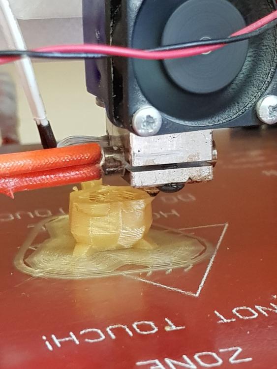 Ah okay,forse ho trovato,quando senti attrito e hai fatto il procedimento il piano è livellato,ma hai una distanza pari al livellamento,dovresti averla già impostata con la stringa #define ,ma se dai come altezza primo layer a 0,4mm hai il diametro nozzle = all'altezza del primo layer,che è una situazione gestibile,può essere compensato col moltiplicatore in realtà,ma perchè complicarti la vita quando puoi reimpostare il primo layer?Prova a dare un 0,2mm di layer e un 120-130% come primo,dovrebbe anche aiutare nei sottosquadri perchè depositi meno materiale a strato,quindi accompagni un po' meglio gli angoli. Non c'entra direttamente ma ho notato che come moltiplicatore dell'estrusore hai impostato un 0.9,in questo modo la portata viene ridotta del 10%,mentre invece hai dato un valore di spessore (extrusion width) fisso a 0,45mm esterni e valori >100% per gli altri,è voluto o è una svista?Perchè così hai toccato 2 valori e uno compensa l'altro,se non è voluta per una funzione particolare ti consiglio di riportare il primo a 1,e di riportare,per queste prove,i valori di default.Poi se la portata dev'essere toccata lo puoi provare a fare in live da repetier,così puoi vedere,magari stampando una colonna,quale ti da stampa magra,giusta o grassa...il width del primo layer si tende sempre a darlo grasso,io coi valori di slicer di default mi son sempre trovato bene,ma anche lì,devi fare qualche prova,se i passaggi dell'estrusore sono filuzzi staccati-->aumenti,se vedi che son troppo compressi l'uno sull'altro-->diminuisci Poi,il materiale che trovi nelle confezioni è sempre un po' scadente,ma questo lo sappiamo,se è pla abbassa la temp del piano,tipicamente si va dai 40 ai 60,e il pla c'è anche chi lo stampa su piano freddo in realtà, 70 è effetivamente tanto -
