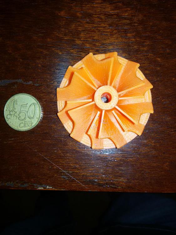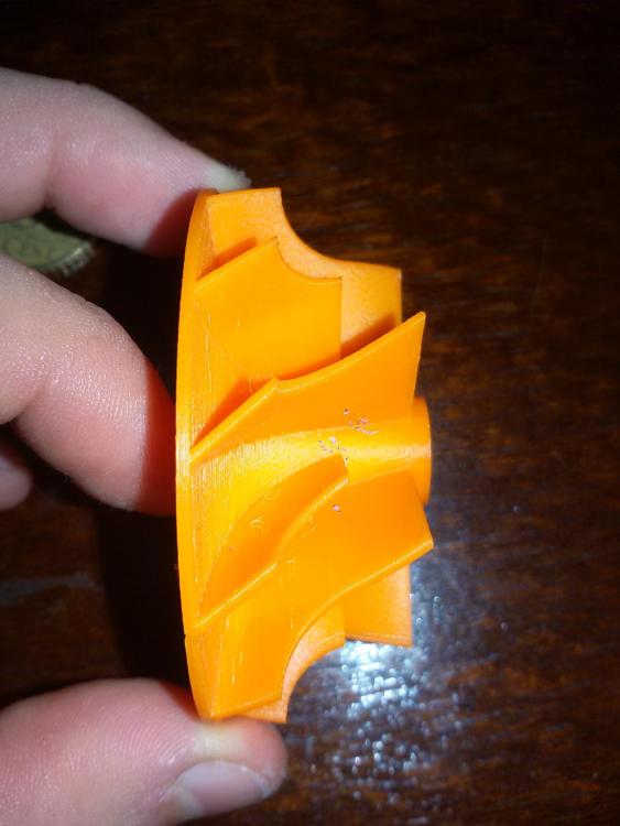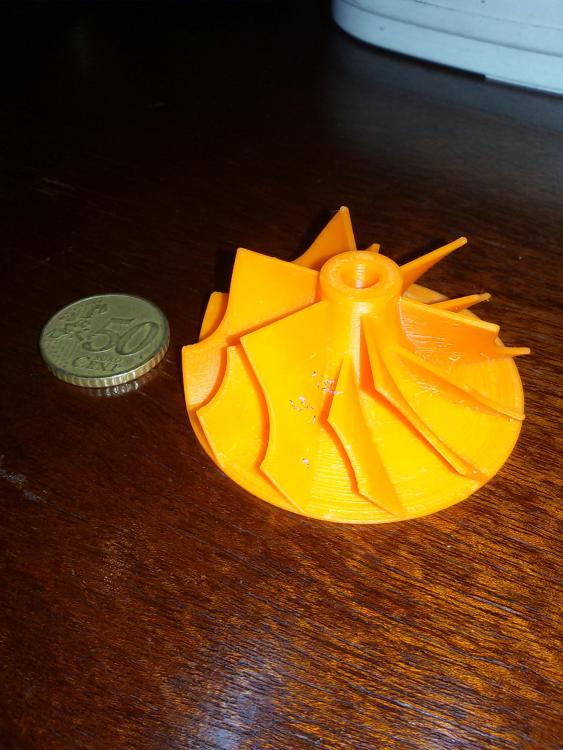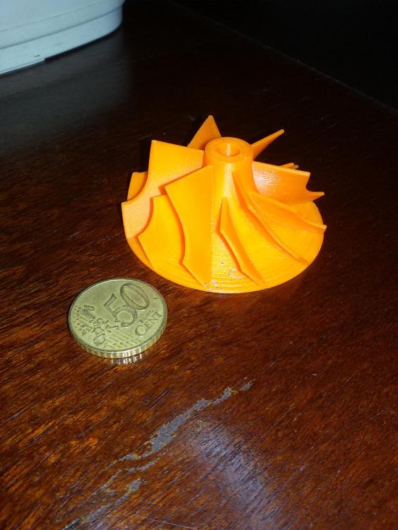 14. Rimango sul ni per ciò che riguarda il primo commento,inerzie e giochi ed eventuali risonanze ci sono su entrambe,ti faccio un esempio,la wasp viene intorno ai 2200/2400 no?questa ad esempio è una girante di una turbina stampata con una cartesiana che costa anche un pelo meno,e con un materiale che mi son vergognato di metterle dentro da 12 eur/Kg,layer 140 micron,la temperatura l'ho cannata,nel senso che è eccessiva come puoi notare dalle ragnatele e dalla geometria un po' "sformata",i doppi assi,4 cuscinetti per asse,ecc. come vedi ti permettono di recuperare molta precisione.E ha un estrusore che da solo solo pesa come il resto della macchina a momenti XD Però ripeto,soffrono entrambe di questi problemi,ove possibile sta a te regolare le velocità e le accelerazioni per evitare che ad alcune frequenze inizi a ballare tutto. L'hypercube inoltre ha un telaio in alu e okay,ma nella reprap pura hai la la struttura giuntata con pezzi stampati e parti strutturali anche importanti sempre stampati,cioè,a sto punto una prusa steel/alu che almeno il frame non ha pezzi in plastica Sulle migliorie non saprei,hai già guide lineari e un hotend all metal,un'enclosure attorno all'area di stampa se usi abs o materiali che si espandono molto con l'aumentare della temp devi farlo,però non è un upgrade,è proprio l'abc per stampare i materiali rognosi...lascio la palla all'utente che ha commentato sopra per questo aspetto. Per ciò che riguarda l'elettronica posso dirti che le delta in via teorica hanno bisogno di una maggiore potenza di calcolo,ti dico teorica perchè le reprap,anche in sta configurazione,si sono sempre accontentate andando bene di una ramps 1.4. Poi tieni conto che la compri in kit sotto un marchio specifico,non mi preoccuperei per nulla per sto aspetto... Voglio chiedertela io una cosa per pura curiosità,la girante in alto a dx si tratta di un esperimento o un rilevamento da pezzo?Ho stampato qualche giorno fa un'alettatura da turbina da montare su un vecchio quadricottero ma esagerando con la serie polare mi son trovato il centro talmente fitto di materiale che non pescava bene l'aria,e nel tuo caso suppongo si tratti di spostare qualche liquido,che avrà anche la brutta abitudine di cavitare. Mi ricorda molto quella situazione,che uso specifico ha?Non hai sentito di quest'effetto strozzatura? ps ah,i puntini viola al centro di ogni immagine sono pixel bruciati...non farci caso