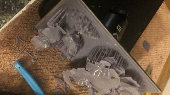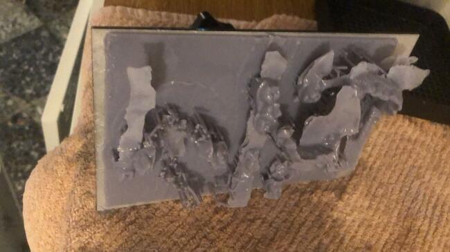 1. Ciao, oggi per 2 volte consecutive ho avuto questo problema con la mia stampante Saturn. Stampo modelli per uso ortodontico. Le due stampe sono stata inviate con file diversi, in entrambi i casi il film era nuovo o cambiato da poco e nel secondo caso l'avevo appena risettata sullo 0. Ho provato a fare un test sul proiettore e non m sembra ci siano problemi. qualcuno ha mai avuto lo stesso problema. allego le foto. E' come se creasse una strato di 2 millimetri circa per tutta l'area di stampa. Grazie