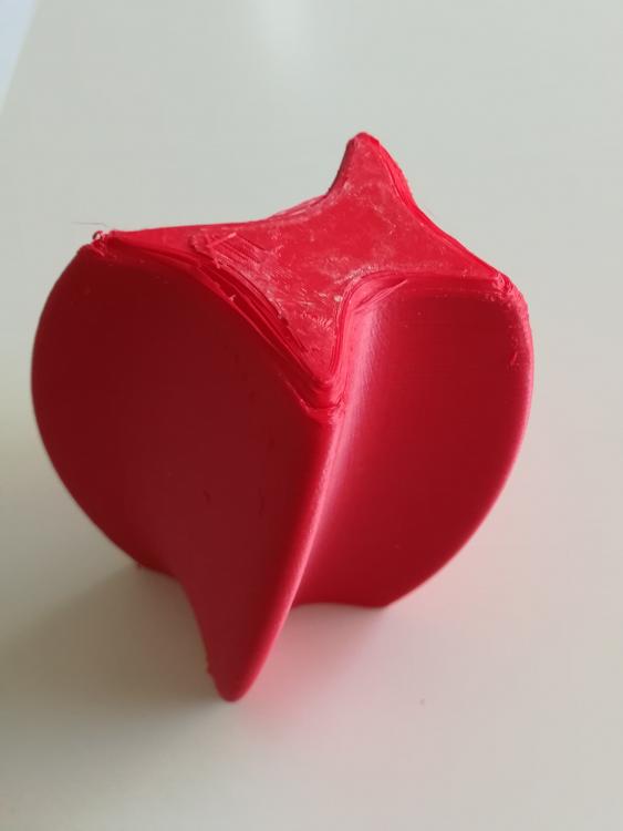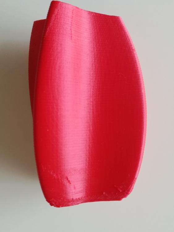 Ciao! Ho stampato questo piccolo vaso come esperimento. E' venuto abbastanza bene, secondo me, solo che la base, come vedete dalle foto, essendo a sbalzo è venuta con dei filamenti fuori dal profilo. Volevo chiedere se conoscete un modo di sistemare la base, appunto, e le piccole sbavature presenti in giro per la superficie. Se avete un'idea, spiegatemi il motivo del difetto... Il PLA è della Tianse. Grazie!