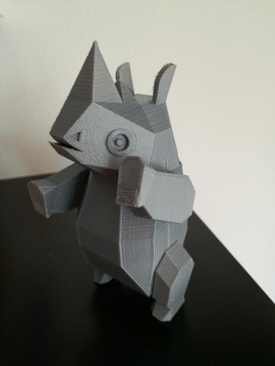5. Ciao! Premetto che sono molto contento dei risultati che sto ottenendo con l'economica Geeetech I3 e, nel limite del possibile, vorrei migliorare le stampe. Quello della foto è un modello trovato su Thingverse e stampato da me. Quello che adesso vorrei capire e risolvere sono quelle "scie" ripetute che avrete notato ad esempio vicino agli occhi o dopo uno spigolo: a cosa sono dovute, secondo voi? Vorrei risolvere anche quelle imperfezioni (cerchio rosso) che non sono presenti nel gcode e vengono generate durante la stampa. Una supposizione: potrebbe essere poca stabilità della stampante o vibrazioni dovute ai movimenti della stampante stessa? Tutti i suggerimenti sono ben accetti. Grazie