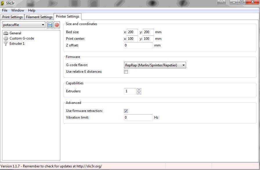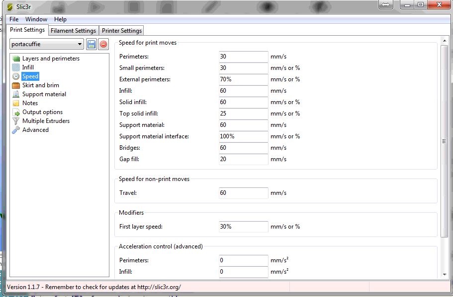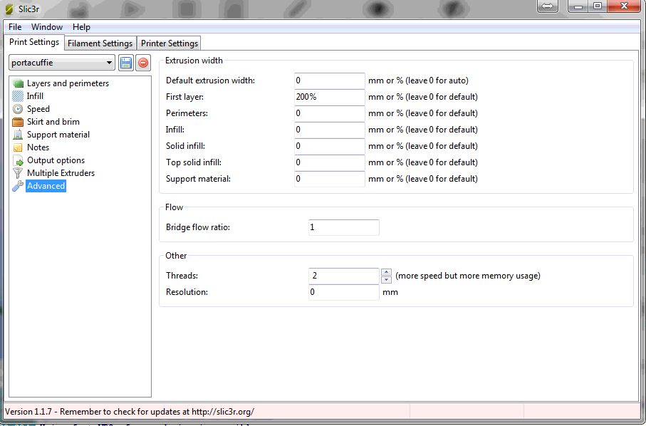 come slicer uso slic3r integrato in repetier host,e in seguito allego tutte le foto delle impostazioni.grazie mille ragazzi. non so' il perchà ma gli admin hanno rinominato il mio post in "la mia prima stampa con abs" io sto provando con il pla.. -