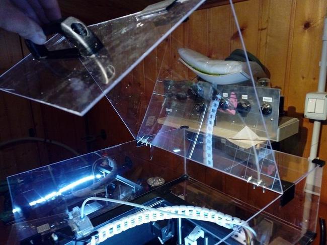 Ecco le parti che ho creato per la copertura... ora faró un nuovo tread con i file per chi volesse farsela. I fogli di plexiglass li ho trovati all'Eurobrico. si tagliano benissimo dopo due passate col cutter e poi spezzati. Tutto si monta utilizzando le quattro brugole sopra la stampante senza fare ulteriori buchi.. -
