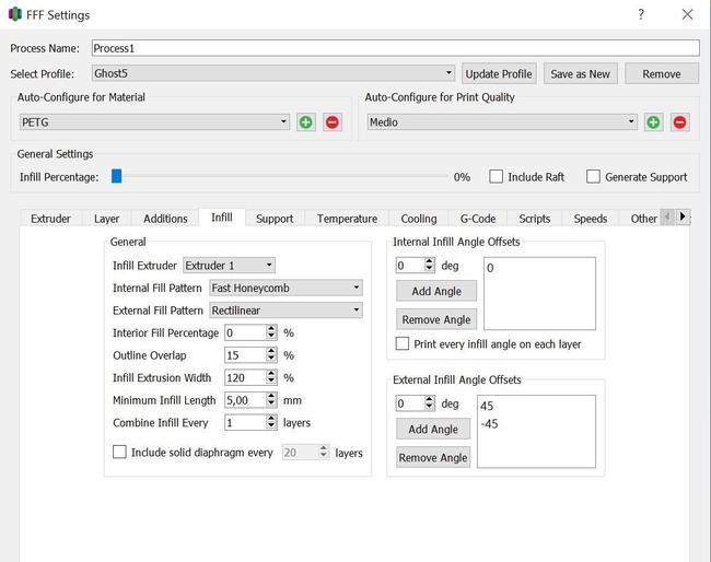 Buongiorno a tutti, Avrei bisogno di una info su Simplify3D.... purtroppo il mio inglese scolastico é di una quarantina d'anni fa e malgrado io da Radioamatore "parli" col mondo, le frasi sono ridotte all'osso e mi manca l'inglese "tecnico"...... Vorrei sapere se su questo software é possibile ingrossare le pareti della parte interna... che essa sia a nido d'ape o a linee... Quale voce devo modificare? Oppure il software regola le pareti in base al pezzo e alla percentuale di riempimento? Grazie per ogni info. -