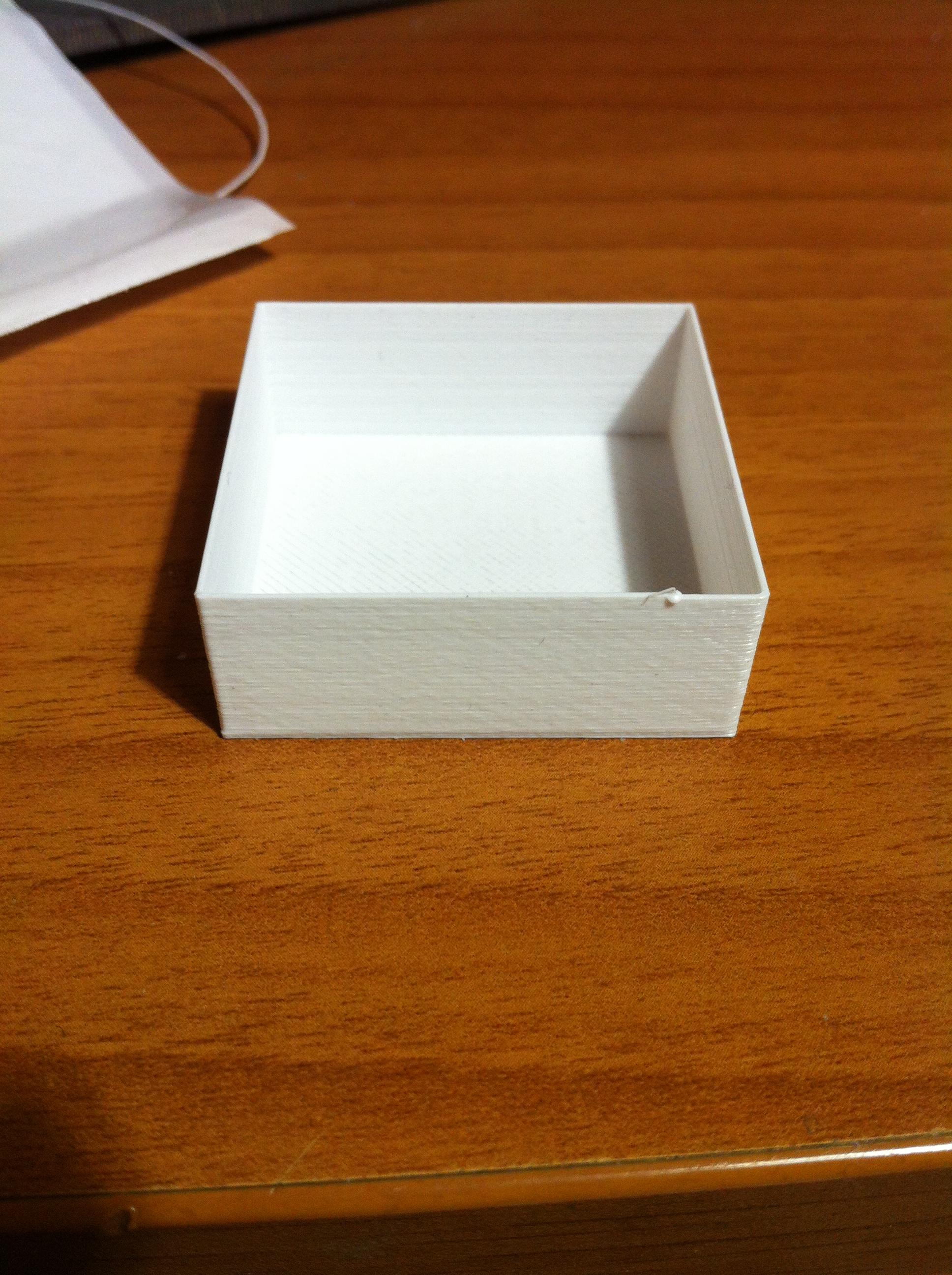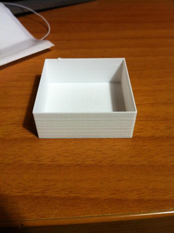 Allora, innanziutto grazie! Per quanto riguarda le cinghie in effetti non ho ancora capito bene quando sono giuste, però ti dico che ho provato a smollarle e tirarle un pò, ma le stampe sono sempre state identiche; come test uso sempre un cubo 4x4 senza infill, singolo perimetro, per vedere la precisione di sovrapposizione sui lati; il problema è che il difetto lo fa al 90% delle volte solo su tre lati... e non capisco perchè! ovvero, guardando la stampante frontalmente, il primo dietro viene quasi sempre perfetto, i due laterali "mossi" ed idem quello frontale; In pratica ci sono linee non perfettamente soprapposte, su ogni lato ad altezze diverse... in allegato una foto per capirci meglio..! Però, cosi stampando, il disallineamento non è cosi enorme come quando ho stampato la boat..! Cioè, dove ci sono le due "porte" il bordo porta in alcuni pezzi l'ha stampato molto piu spesso che in altri se vedi..! Ho anche notato che se stampo lo stesso cubo con infill, ogni volta che fa un nuovo strato e riparte dallo stesso angolo/punto per disegnare il perimetro, mi sborda sempre di piu della plastica (come ne scendesse piu del dovuto solo li) , che man mano si accumula ad ogni strato arrivando poi ad avere un angolo sfalsato a punta..! Poi, l'unico gioco che avevo trovato è su uno dei cuscinetti poggia carrello (il mio ne ha uno da una parte e due dall'altra) che presenta un minimo di gioco verticale... Un minimo di gioco anche nell'asse z tra asta destra e "dado" che si muove appena a destra e sinistra (ma non c'è gioco dove scorre effettivamente poi il cuscinetto, quindi non può indurre a spostamenti) il cuscinetto di rinvio dell'asse x in effetti mi sembra leggermente duro se stringo la vite, il che mi fa pensare sia leggermente bloccato... Tutti i fermi degli ingranaggi motori stretti! La difficoltà piu grossa nel montaggio l'ho avuta per fissare le due barre lisce (dove scorre l'estrusore) dell'asse x nelle due sedi a cuscinetti sinistra e destra..! Dato che erano a pressione e durissime, non sono riuscito ad allinearle perfettamente spingendo totalmente in fondo entrambe, ma non credo sia questo, sia perchè non hanno gioco e sia perchè rimangono comunque parallele ed equidistanti (in pratica dal lato destra una barra sborda leggermente piu dell'altra perchè non sono riuscito a spingerla piu a fondo nel blocco di sinistra) Gia che ci sono ti chiedo una cosa.. ho visto un video in cui un ragazzo spostava sia l'estrusore che il carrello appoggiandoci sopra un dito... ma come è possibile..?? Io devo spingere abbastanza per muovere l'estrusore, ed il carrello devo afferrarlo almeno con due dita e tirare, se ci appoggio il dito sopra non si muove nemmeno a morire..! -