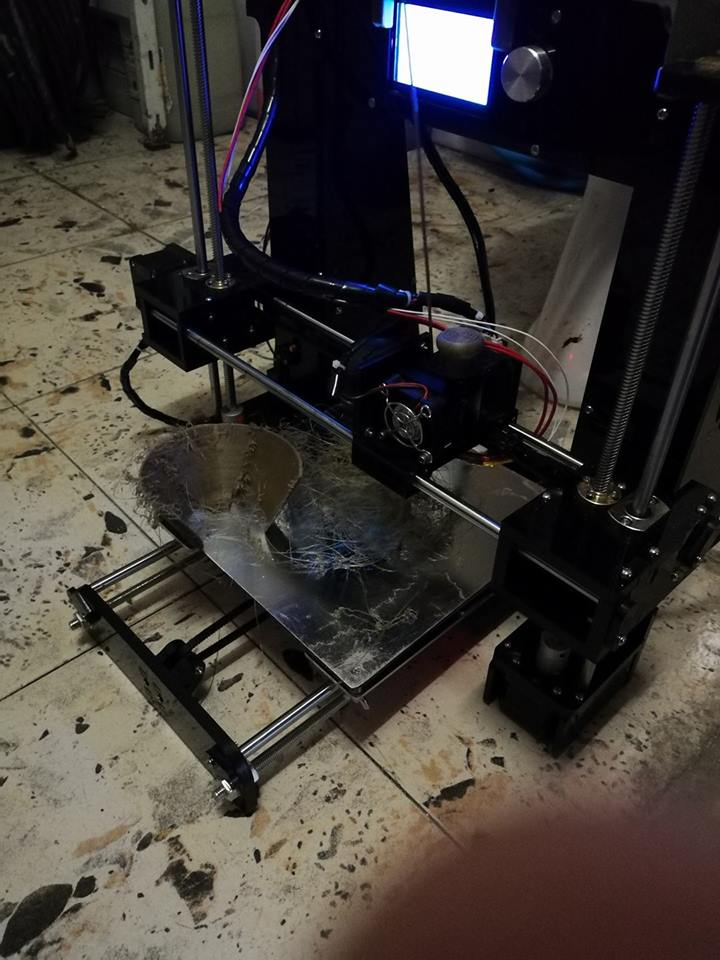 Il seguito è stato un vero trauma... dopo 12 ore di stampa e 10cm stampati l'asse z decide di invertire il senso di marcia (non so se per qualche strato o altro) spazzando via l'oggetto stampato.