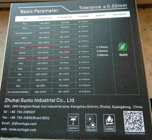 Mi appresto ad iniziare a usare i filamenti Sunlu presi qualche tempo fa, qualcuno li ha già provati? Con il PETG, qualcuno conferma i valori di temperature come quelli sulle scatole in foto? Riguardo valori di velocità e ritrazione, cosa consigliate (ovviamente farò prove con cubo e barchetta)?