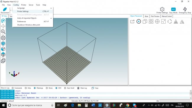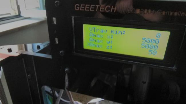 Da Repetier non posso modificare il valore sulla Eprom (l'opzione sul menu strumenti rimane grigio) poi ho provato a modificare il valore tramite LCD, scollegando la stampante dala computer tramite USB.
