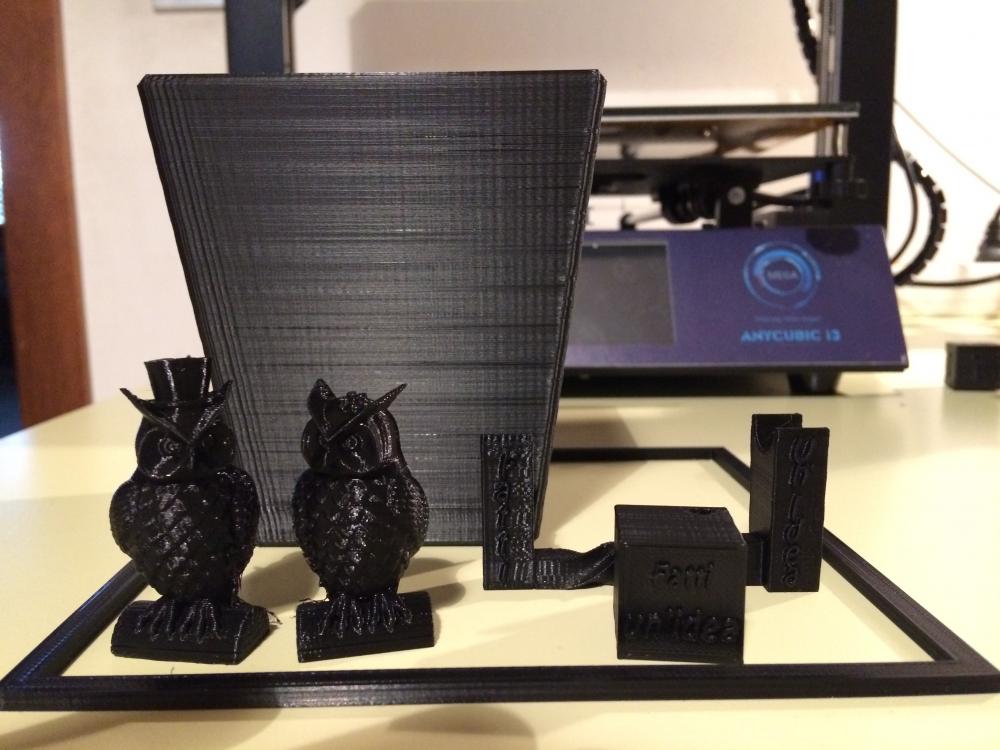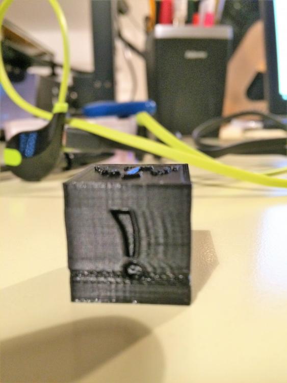 Visto che sul mio profilo sono passato da "Aspirante stampatore" a "SMANETTONE", vediamo dunque di dimostrare che merito questo appellativo. Oltre ai "Gufetti" di prova trovato nella SD della ANYCUBIC i3 MEGA, in questi giorni (notti in realtà) ho realizzato, o meglio ci ho provato, alcuni altri semplici oggetti. Nel complesso sono soddisfatto, è comunque una soddisfazione vedere comporsi sotto i propri occhi un oggetto (per quanto banale) disegnato da te! Credo però che gli oggetti presentino alcuni difetti probabilmente dovuti ad impostazioni errate o quant'altro. Oltre ai gufetti dicevo, ho realizzato un comodo supporto che uso per tenere disteso il mio spazzolino da denti che essendo a profilo tondo non lo puoi appoggiare, un semplice cubo con scritta, una banale cornice di 15cm di lato che ho stampato per verificare che il piano della stampante fosse tutto in bolla e non solo al centro dove fino a quel momento avevo stampato e, per ultimo un contenitore che uso per gettare le capsule della macchina da caffè, per il quale ho impiegato la bellezza di 7 ore e 47min (la simulazione in CURA è molto precisa! mi indicava 7 ore e 45min). La luce bianca del flash mette fin troppo in risalto le striature che in realtà sono un po' meno evidenti, ma come si vede nella foto (spero che riusciate a vederla bene) sulla parte sinistra di ogni lato del contenitore si fanno più evidenti, hanno un po' più spessore. Sulla parte superiore invece, c'è una linea diagonale venuta durante uno spostamento veloce mentre faceva il penultimo layer (l'ultimo poi non è stato sufficiente a coprirla) Poi se riuscite a vedere (altrimenti posso provare a fotografarlo meglio) sulla parte sinistra del supportino accanto alla scritta "Fatti" c'è come un eco della scritta stessa, lo spessore è veramente a livello di micron ma sufficiente per notarlo. Ultimo problema, ma al quanto preoccupante, il sensore del filamento che come si vede nella foto è attaccato con una calamita, mentre stampa ogni tanto si stacca dalla sede (credo a causa di qualche spiarle del materiale molto rigido) e viene trascinato su insieme al filo che ovviamente non scorre più come dovrebbe causando layer difettosi come si vede nell'ultima immagine. Come potrei risolvere questo e gli altri problemi? Qual è il vostro parere su questi oggetti? Come sempre grazie in anticipo. Gianpy