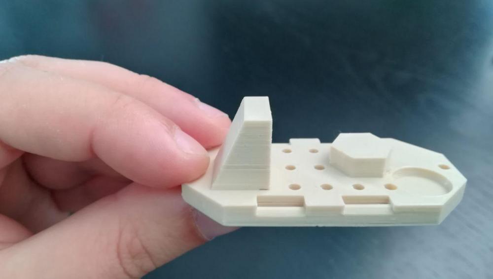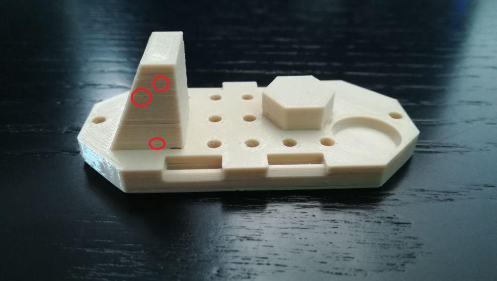 Ragazzi finalmente sto iniziando a stampre qualcosa di decente ma noto dei piccoli difetti di stampa. posto le foto, a cosa possono essere dovuti? dei piccoli forellini sulla "piramide" (vedi prima foto) e un layer venuto male (potrebbe essere un caso però, leggermente distaccato). MI sono accorto però che sia il piatto che conseguente l'asse x sono leggermente inclinati, di 2-3 mm, potrebbe essere questo il problema per il layer? e per le mancate estrusioni ogni tanto invece?