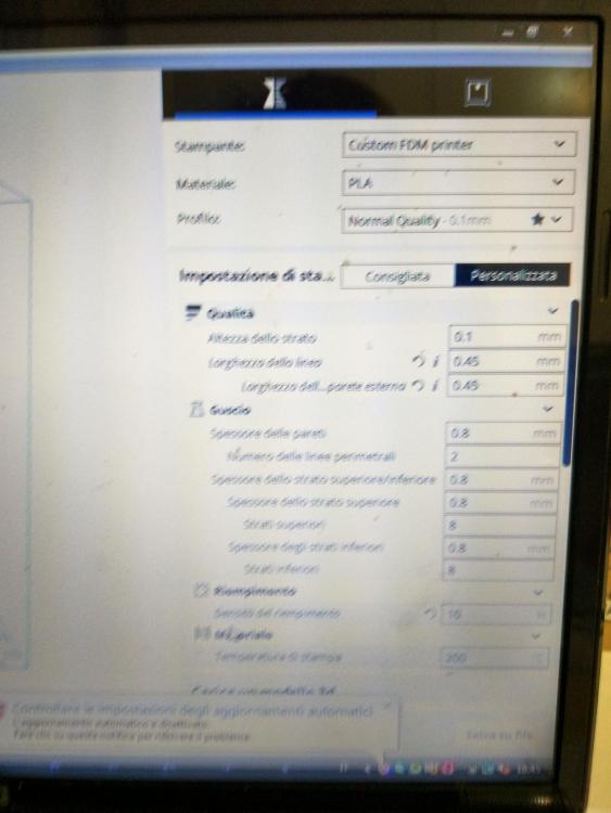5. Quindi sia altezza strato, sia altezza strato iniziale, sia larghezza della linea devo metterli o 0.1 o 0.2 tutti, giusto? Scusa se te lo richiedo ma non vorrei sbagliare larghezza della linea me lo fa reimpostare a 0.4 se metto nei primi due 0.1