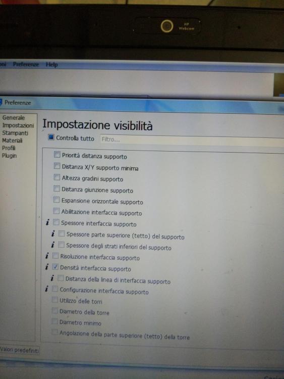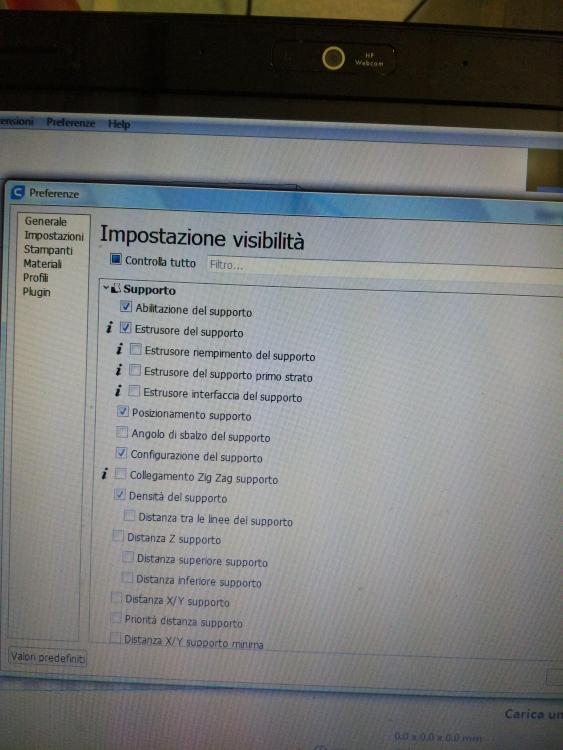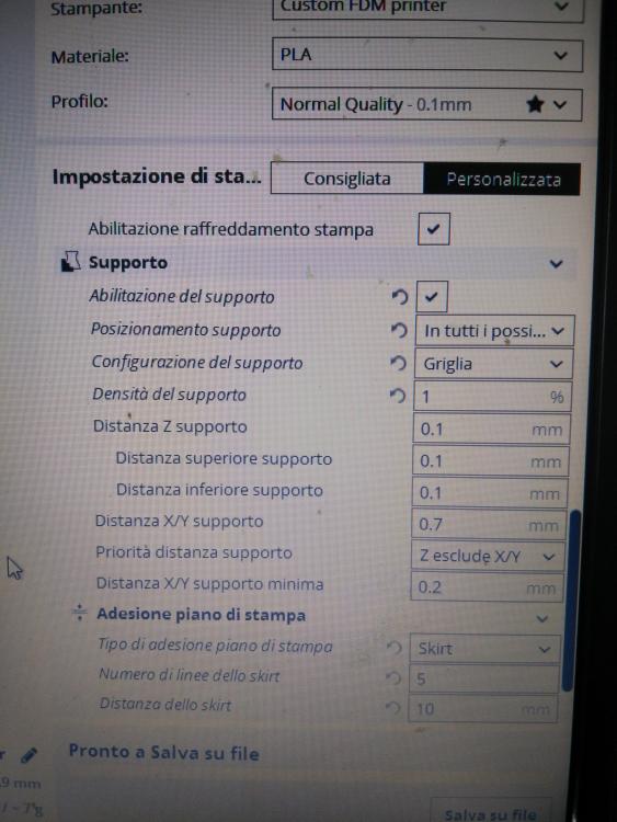 16. Io avevo queste impostazioni... Posso provare a variare la distanza x/y supporto minima... Non so se cambia qualcosa però
