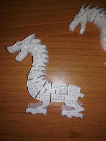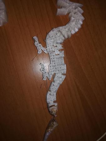 ciao jagger il problema è che lo fa su stampe random magari anche sullo stesso progetto, ad esempio ieri ho provato a stampare questo drago in tre pezzi nella prima stampa ho messo tutti i pezzi insieme e ho fatto partire la stampa, devo dire che non ho riscontrato grossi problemi se non fosse che il filo si sia rotto durante la stampa e quindi non l'ha portata a termine, ma per la stampante il lavoro era finito correttamente dato che quando sono tornato l'estrusore si trovava a fine stampa, successivamente per questione di tempo il secondo l'ho stampato singolarmente, ho fatto prima l'ala che è stata stampata perfettamente e poi il corpo dove ho riscontrato il problema sopracitato, pla un po su tutta la stampa a causa dei movimenti casuali dell'estrusore e come puoi vedere sulla coda una bruciatura causata dall'estrusore che scendeva verso il piano ho limitato i danni dato che ero li vicino e ho bloccato tutto appena mi sono accorto di cosa stesse succedendo. Il problema non lo fa a fine stampa ma durante la stampa tra un layer e l'altro. Al momento sto utilizzando cura come slicer e no non ho mai messo mano nei codici. -