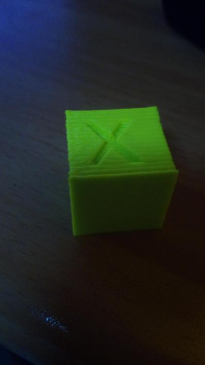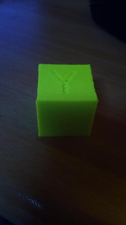 prusa I3 pro B - problema di stampaDaddy Lee ha risposto a Daddy Lee nella discussione Problemi generici o di qualità di stampa Buonasera Il cubo appena stampato misura 20.2, 20.2, 20. E direi che vada decisamente bene. la lettera Z è profonda 2.1mm. la X 1.6 mentre la Y è di soli 3 decimi! inoltre mentre le lettere y e z sono centrate nelle loro facce, la x è spostata verso sinistra di circa 2.5mm. la qualità di stampa è enormemente migliorata fatta eccezione per la faccia superiore. dalla foto però si nota che la lettera Z è deformata...quindi non escludo che gli errori di riempimento, che nella parte esterna alla lettera risulta essere omogeneo, dipenda appunto dalla deformazione stessa.