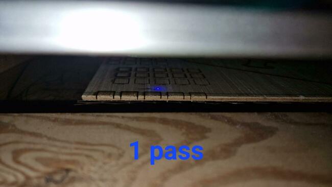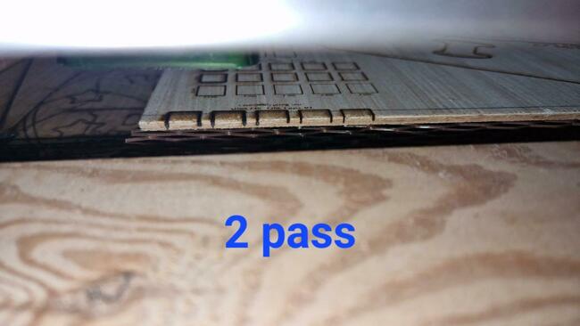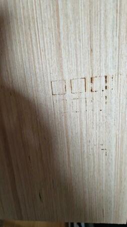 Sarà anche un laser di poca potenza ma avendolo usato poco e non avendolo spinto oltre la sua potenza massima (come successo con altri predecessori) ieri ho avuto difficoltà a tagliare pure del cartone.... S500 F200 non passa alla fine ho fatto questo taglio schifoso al massimo della potenza e F150 non solo il taglio non è netto ma mi brucia come una sigaretta.... 😞 Sarà il doppio strato di alveolatura che complica la cosa. Spero non sia un problema del laser stesso perché avevo avuto l'impressione che il normale compensato (escluso il rigatino) fosse tornato a tagliarmelo..... Che passione.... 😞 -