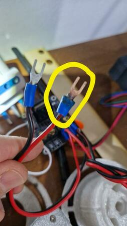 Ho appena constatato un altro sintomo: Accendendo la stampante questa volta il LCD pur illuminandosi non mostra scritte sullo schermo. (prima le mostrava come dimostra il video) Allora ho provato a connetterla con Repetier. La stampante si connette ma i comandi di movimento non vengono applicati e quindi non risponde proprio niente. Infine ho notato che pure la ventola non si accende. Quindi non arriva proprio l'alimentazione. Sulla motherboard nemmeno ci sono lucine accese. Misurando la tensione in uscita dall'alimentatore trovo 12v (misurata all'ingresso del power su un mosfet che per ora avevo bypassato e tenuto solo per prolungare il power da li al morsetto power della motherboard. La cosa strana è che ai capi del power della motherboard ho una tensione di soli 4v che magari non è sufficiente Non capisco come puo calare così di colpo attraverso due due spezzoni di cavo di circa 10 cm che sembrano intatti. A questo punto mi converrà provare a connettere direttamente i 12v alla motherboard.... E pochi minuti dopo altra evoluzione. LCD non si accende proprio 😞 (Speriamo di non averlo bruciato) Mentre ai capi della mainboard ho 3,6v sembra sceso ulteriormente ..... -