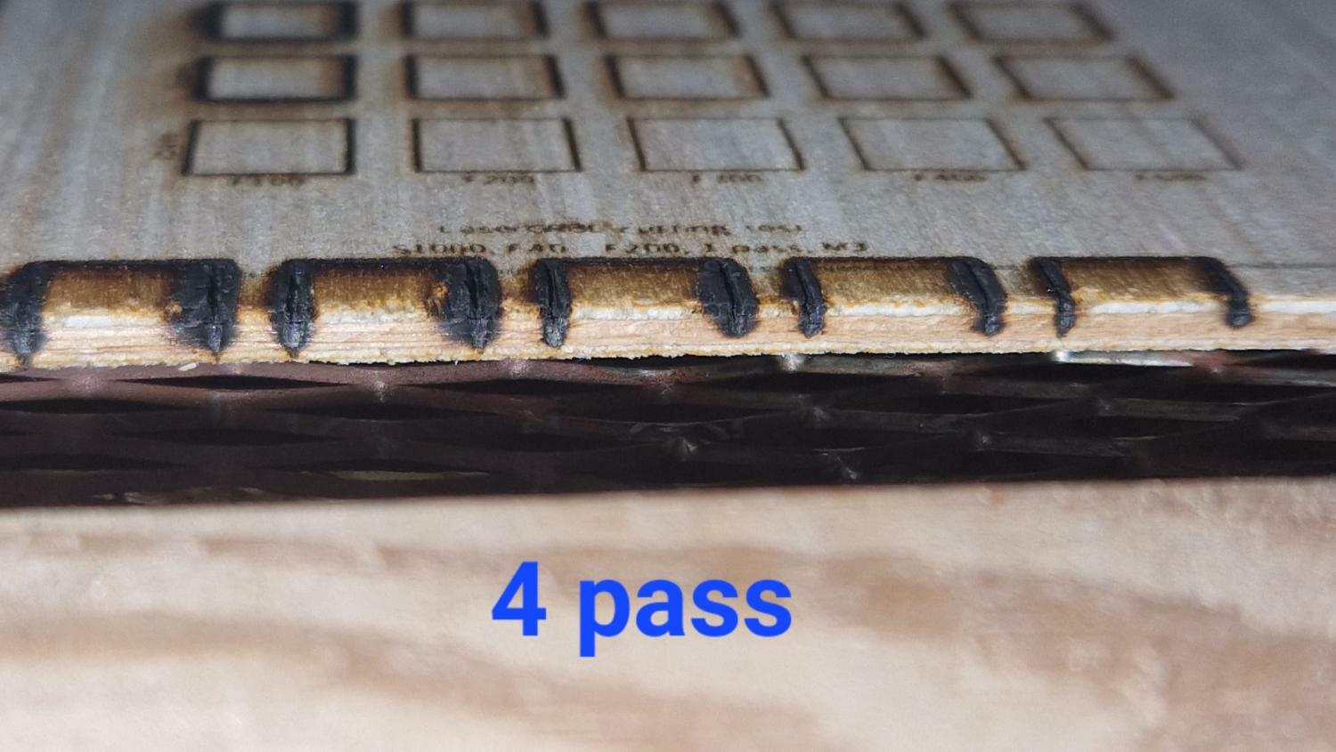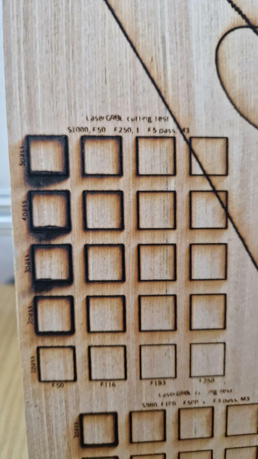 Sarà anche un laser di poca potenza ma avendolo usato poco e non avendolo spinto oltre la sua potenza massima (come successo con altri predecessori) ieri ho avuto difficoltà a tagliare pure del cartone.... S500 F200 non passa alla fine ho fatto questo taglio schifoso al massimo della potenza e F150 non solo il taglio non è netto ma mi brucia come una sigaretta.... 😞 Sarà il doppio strato di alveolatura che complica la cosa. Spero non sia un problema del laser stesso perché avevo avuto l'impressione che il normale compensato (escluso il rigatino) fosse tornato a tagliarmelo..... Che passione.... 😞 -
