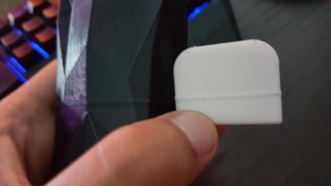 Credo che al momento mi terrò la prusa. L'importante è che le striature non mi diano problemi nella colorazione. Potrei avere anche la foto della confezione del fondo primer grigio? Te ne sarei grato, come ti ho detto presi uno trasparente che forse non era proprio il massimo, se non sbaglio nell'etichetta diceva stucco spray ma non ne sono sicuro. Per quanto riguarda il mio modello eccolo qua. Purtroppo alcuni pezzi si sono staccati nel rimuovere i supporti. L'uncino si è salvato di poco ma si è comunque creata una divisione (non visibile nella foto) tra lama e manico. Dici che la colla a caldo è esagerata? Meglio della colla per i particolari? -