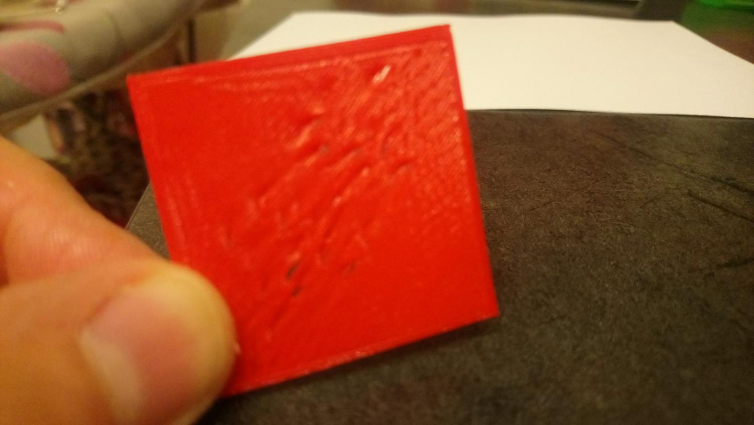 Posto qui giusto per continuare nella discussione. Il filamento umido cosa comporta? Cercando si legge di tutto. Aumenta di diametro? Si irrigidisce? Il mio ho notato che sembra "adesivo", dopo l'infornata lunga, quando srotola, ma anche al tatto, sembra abbia una patina appiccicosa attorno. -- Aggiungo -- Sto reimpostando slic3r per migliorare la qualità di stampa, questo è un quadrato 40x40x1 Non riesco a capire dove sia il problema. Calibrato il piano manualmente, altezza layer 0.2, primo 0.2, nozzle 0.3. Estrusione predefinita 0.3 primo layer 0.3 temp nozzle 200 primo secondo 190 piatto 65 primo 55 altri. -