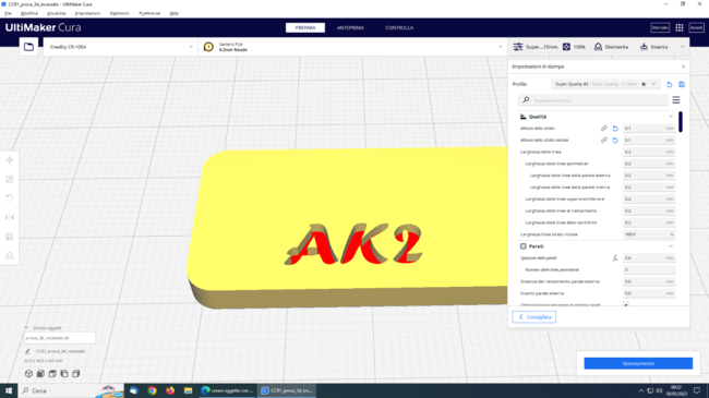 13. Ma non ho capito se hai provato a resettare le impostazioni che hai modificato e a selezionare la macchina dal menù di Cura? Per essere calibrata male devi averla modificata in qualche maniera altrimenti le guide e i motori sono identici e con passi fissi.