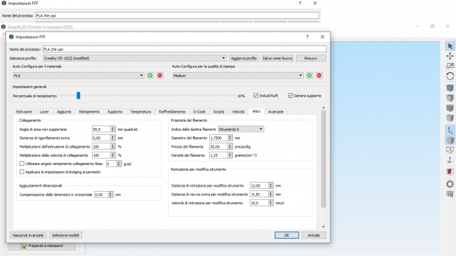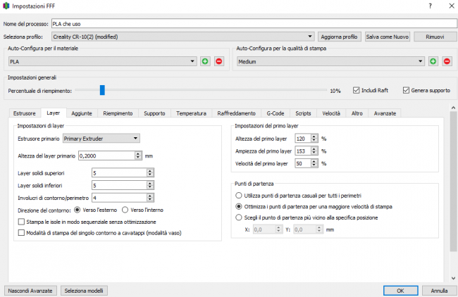 Salve a tutti, è da un po' che non scrivo in questa sezione, ma da un po' di tempo le mie stampe presentano il problema che vedete in foto. Secondo voi da che cosa sono dovuti questi punti? Prima le stampe venivano lisce e senza punti. Stampo con una CR10S e con Simplify3D. Vi allego anche le impostazioni che sto usando