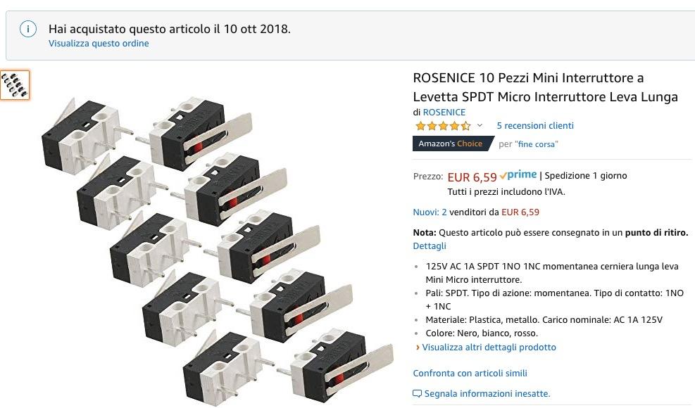 problema risolto, ho comprato un finecorsa simile e ho facilmente smontato la levetta e l'ho messa dove mancava. sto stampando un cubetto di prova, perlomeno mi sembra perfettamente quadrato 🙂 -