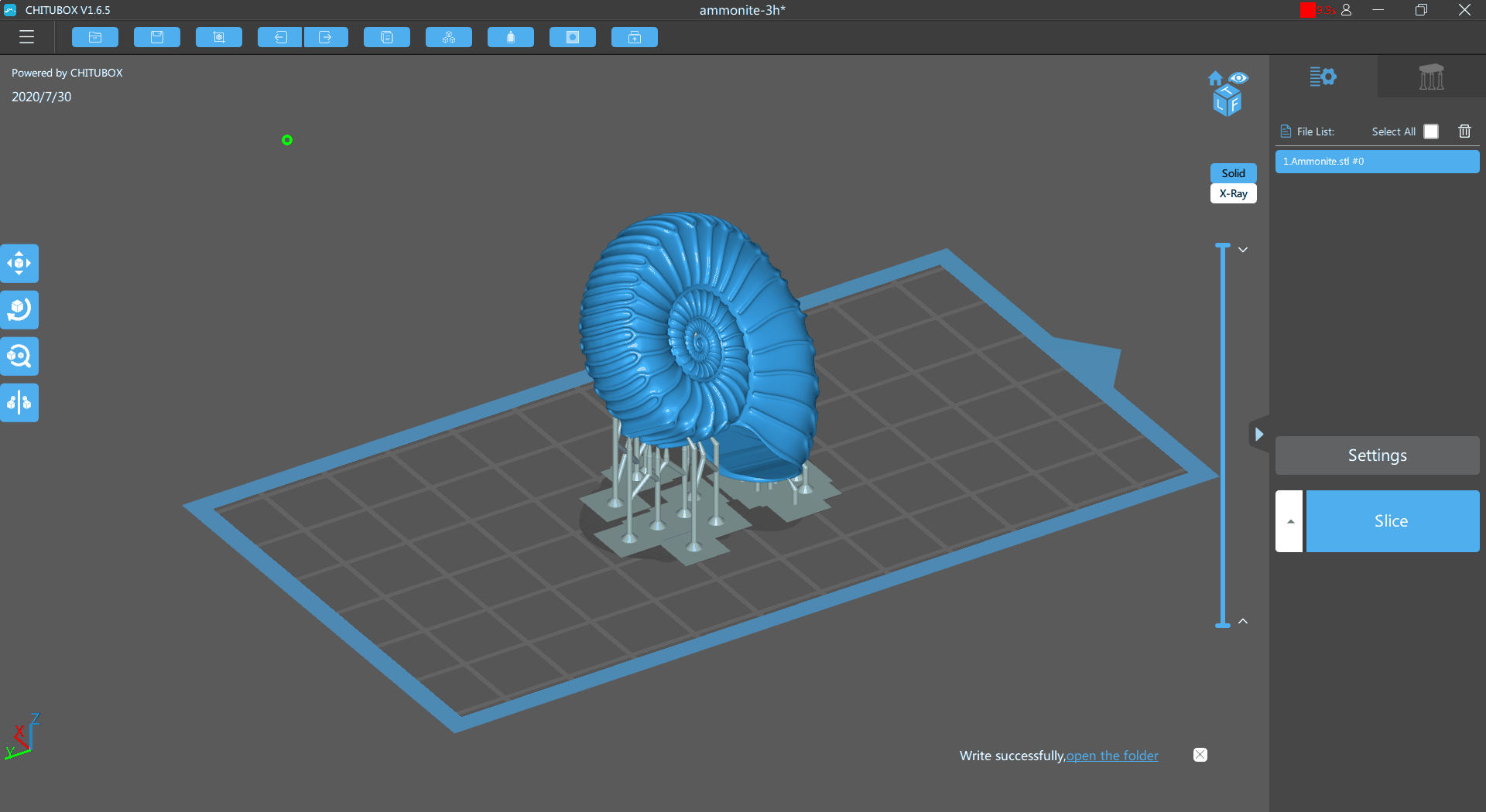 Qui sotto le mie impostazioni di Chitubox con lo slice che ho creato per la stampa