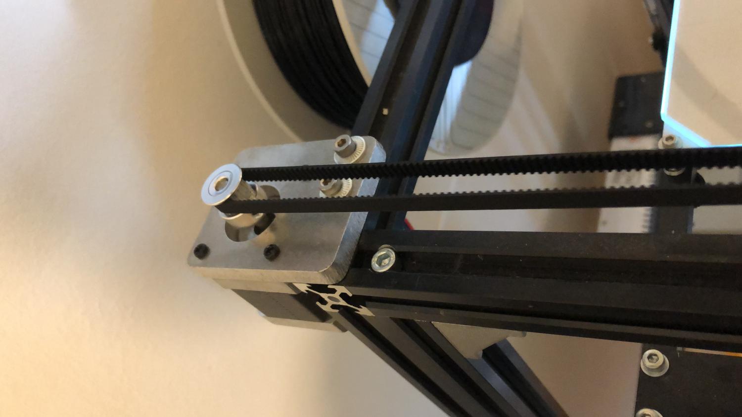 Puoi gestire un doppio motore per l’asse z anche con la lardge s basta mettere un adattatore di 2 euro che sdoppia l’uscina Per i cavi del motore, in caso di doppio motore io consiglio sempre di sincronizzare i due assi con una puleggia chiusa perché quando i motori non sono più alimentari succederà sempre che uno perde passi rispetto all’altro. Guardate come ho fatto io! Qualcuno di voi ha il profilo già pronto per cura di questa stampante? -