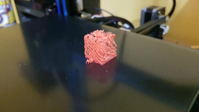 in questa stampa, ho provato a spingere il filo con la mano per i primi 2 layer... poi lo mollata ed ha finito il lavoro come da foto.... solo che sarebbe dovuto essere un cubo pieno... -