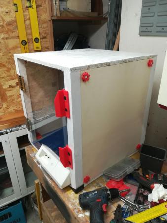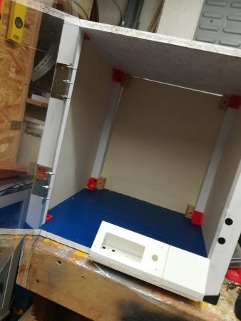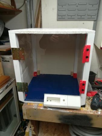 16. geeeteche i3 pro w allora come da titolo mi sto accingendo a construire un box per chiudere la stampante un per attutire il rumore un po perche vorrei iniziare a stampare abs o petg e avete detto tutti che hanno bisog no di temperature ambiente un po stabili per deformazioni o per non rovinare lavori con ventate di aria fredda sui pezzi ecc ecc allora ho un po di domande al genere spero che possiate darmi delucidazioni 1 alimentatore rigorosamente fuori dal box per problemi di temperatura logicamente? 2 scheda anche rigorosamente fuori dal box?per quale motivo?anchessa per problemi di temperatura visto che avendo una ventola di raffreddamento farebbe girre solo aria calda sulla scheda giusto? 3display? 4 hai lati avrei optato sia per pareti di compensato removibili o vetri plexyglass 4mm fermati con dei dati solo hai 4 angoli percio va bene cosi o devo proprio sigillare anche gli spifferi intorno hai vetri o pareti che siano? 5visto che sarebbe un ambiente chiuso si necessità di un ventilatore di estrazione per tenere controllata la temperatura ambiente e per espulsione fumi abs?ma in quel caso non entrerebbe aria fredda da fuori?o non sigillo bene e la lascio passare dagli spifferi delle pareti laterali? 6 insomma ermetico al 100% o basta che sia protetta da grandi sbalzi di temperatura e basta?lo chiedo perche vedo box fatti bene ma con pareti non proprio aderenti e alcuni che riempono di nastro per chiudere ogni dove questo è un prototipo che ho fatto in attesa di fare la bella secondo i vostri consigli 🙂 che dite? p.s. la bobina va internamente attaccata alla stampante in questo modo non mi piace esterna anche se comoda sostituire la preferisco dentro cosi anche la bobina rimane al protetto da intemperie