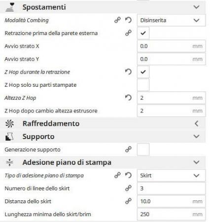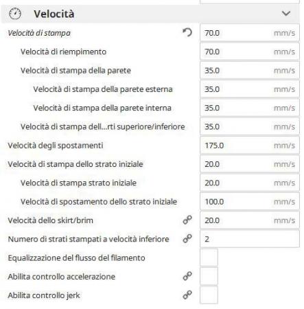 - Velocità di stampa 70 mm/s   //già provato con 50, 60, 70, 80, 90 mm/s