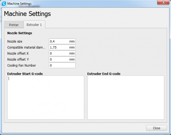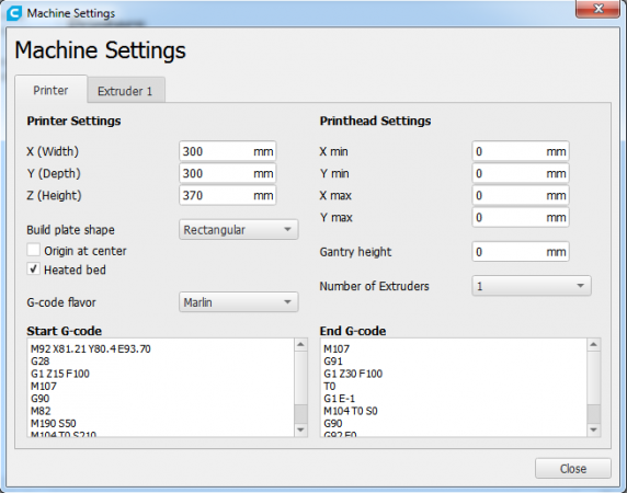 Salve a tutti sono Angelo e avrei qualche domanda relativa a Cura. ho provato a cercare nell'elenco del software il mio modello ma purtroppo non c'è quindi mi pare di capire dovrei scegliere quello custom. dove potrei trovare i valori da inserire nel form? Edit riporto in questo primo post qualche screebshot della configurazione che ho impostato e testato con successo. RepetierHost v2.1.3 Cura Engine Fonzy ha creato un profilo specifico per Cura Engine della X5S per stampa del PLA profilo tronxy Fonzy.rcp in RepetierHost basta scegliere come slicer CuraEngine e importare il profilo Ultimaker Cura 4.0.0 una volta ggiunta un nuova stampante Custom e rinominata Tronxy X5S si procede impostando gli offset in Printer Settings. In printhead Settings ho messo 0 perchè non mi interessa l'ingombro della testa di stampa andando a stampare i componenti sul piano tutti in parallelo. si deve poi inserire lo start g-code che dirà alla stampante come muovere l'estrusore e prepararsi per il riscaldamento dell'hotend e dell'heatedbed Start G-code M92 X81.21 Y80.4 E93.70 G28 G1 Z15 F100 M107 G90 M82 M190 S50 M104 T0 S210 G92 E0 M109 T0 S210 End G-code M107 G91 G1 Z60 F100 T0 G1 E-1 M104 T0 S0 G90 G92 E0 M140 S0 M84 questi invece i setting per l'estrusore appena finisco i test posto gli screenshot anche dei vari parametri di stampa -