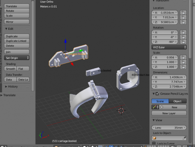 ok quindi in quelli la ventola anteriore si incastra, certo nel mio caso è avvitata. ma come ingombro gli e3d v6 sono più grossi rispetto all'MK10? ps in Blender sono riscito a spostare i vari componenti dell'assemblato. ora come lo modifico quel "fang.booled"?