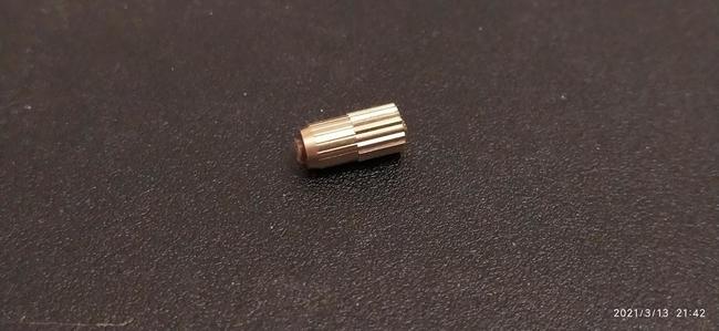 Questa sera mi sono dedicato alla stampante. Ho smontato e rimontato tutto e, alla fine, sono arrivato alla conclusione che mi manca un collegamento. Nel senso che non riesco a sfilare la rotella dentata che sta sul motore che comanda l'estrusore e che spinge dentro il filo. Non me ne ero accorto prima ma, anche nel video che mi ha indicato@eaman, occorre svitare la rotella dentata e sostituirla con quella fornita con l'estrusore di metallo. Ma non riuscendo a toglierla e sostituirla, l'estrusore non funziona perché il filo è libero. Allego la foto esplicativa. Quindi ho smontato tutto e ho rimesso l'originale. Oggi, peraltro, ho ordinato un estrusore diretto in alluminio che mi arriverà tra qualche ora. Ho letto che vanno bene per i materiali morbidi tipo tpu. Ma che vanno bene in genere. Sicuramente voi saprete come sfilare la rotella dentata sul motore... Ho anche stampato un test (FirstLayer) e mi pare venuto bene... è arancione ma dal telefono sembra più giallo. Domani sera stampo un pezzo importante, un a base per il motore elettrico di un progetto che voglio realizzare.