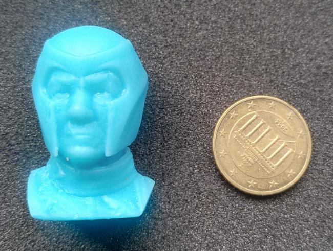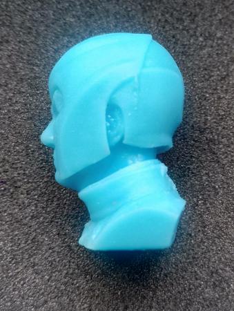 Un mezzo busto di neanche 40 mm.....si vedono le pupille! Purtroppo il mio telefono fa foto di mer.. la stampa ha qualche residuo di supporto che andrebbe carteggiato...ma non mi interessa più di tanto. Sto ancora facendo stampe di prova per ottenere i giusti settaggi con un solo 2 tipi di resina (senza prendere colori diversi) . Un pò come ho fatto con la fdm...una volta standardizzato il tutto le stampe partono senza problemi (però come ben sappiamo con le cinesi ci vuole tempo ..) -