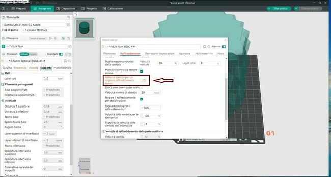 9. Non era nessuno dei 2 ma guardando nelle impostazioni filamento come suggerito da voi ho visto che per le A1 , è attivo di default "rallenta stampa per un miglior raffreddamento". Sia in Orca che in Bambu studio Sembra che entri in funzione in casi come il vase mode per le altre stampa non ho visto rallentamenti , ma guarderò meglio
