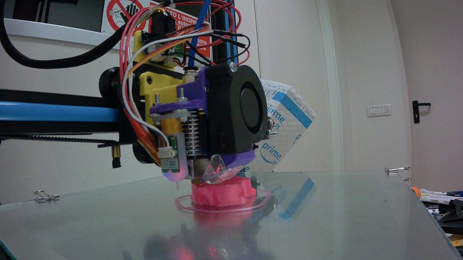 Sto stampando amici, sto nuovamente stampando. Con il sensore, oltretutto. Adesso provo a stampare un pezzo di benchy (giusto per vedere i primi layer, quello con la scritta) decentrato dal piatto. In teoria, dovrebbe riuscire a stampare bene.