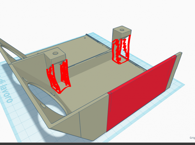 Stavo cazzeggiando e mi è venuta voglia di imparare ad usare thinkercad (l'unico "semplice" per iniziare). Ho quindi preso un case per la scheda madre della A20/A20M e volevo modificarlo, raddoppiandolo, per consentire l'inserimento sia di un RaspberryPi, sia di un mosfet. Sono riuscito a raddoppiarlo ed a posizionarlo al suo posto. Ho chiuso la parte di destra, perchè in questo caso non essendoci più la parete dello chassis della stampante, bisogna metterci una chiusura. Volevo quindi fare due cubotti allineati con i due fori per le viti centrali, questo perchè avendo raddoppiato il case, i due fori ora sono coperti dal tetto del pezzo nuovo. Non ci riesco, non sono capace. Qualcuno mi aiuta ? Anzichè essere fatti a triangolo come ora, dovranno diventare dei semplici rettangoloni fino in alto, con buco grande a sufficienza per far passare un cacciavite. Il foto originale invece dovrà rimanere uguale, solo il lato nuovo sul tetto dovrà essere più grande. Pensavo di salire dritto per dritto alle pareti attuali, ma non ci sto riuscendo. Poi, qualcuno mi sa dire se la parete rossa che ho aggiunto io è perfettamente allineata con il resto del pezzo ? E' una chiusura, quindi deve essere perfettamente a filo, sia in spessore, che in altezza. Non capisco come usare il righello su thinkercad Allego STL A20M_ControlCover_Plus_PiCover_and_MosfetCover.stl questo è ciò che intendo, convertire quei due pezzi originali in due cubi (dentro vuoti) in modo da poter infilare un cacciavite ed andare ad avvitare nel buco laggiù