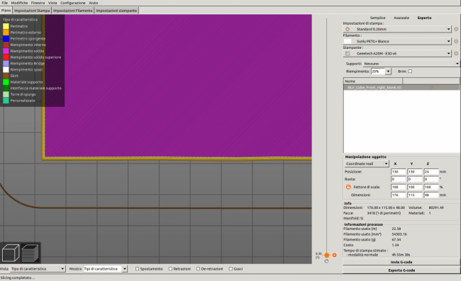 E' un filamento di merda, oltretutto è la mia prima prova in PET. Lasciamo stare. Comunque non è completa, è previsto un led dietro l'occhio, la luce dovrebbe dare una illuminazione differente..... dovrebbe renderlo meno "zucchero caramellato" -